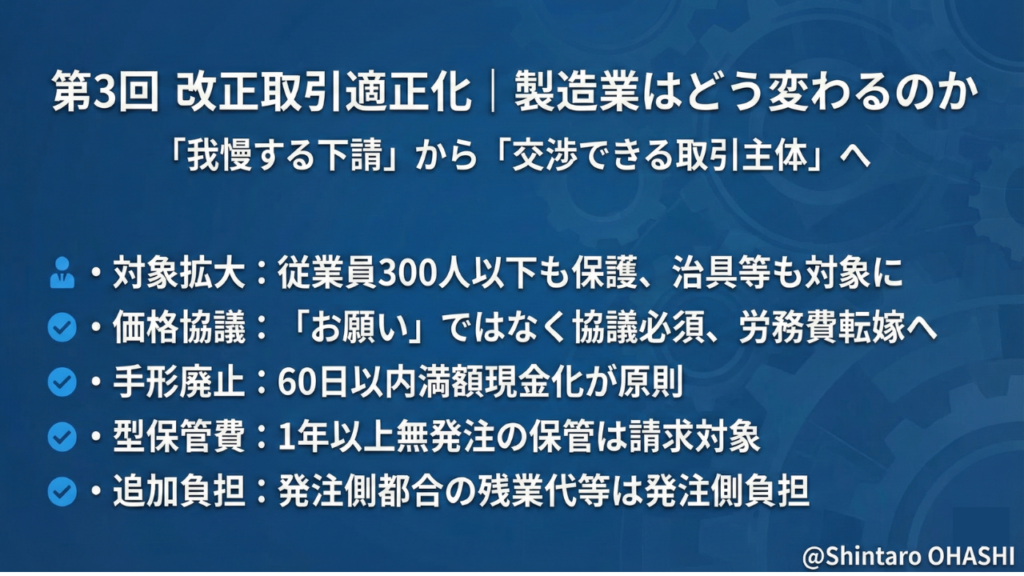 第3回 改正取引適正化|改正取適法・振興法で、製造業はどう変わるのか